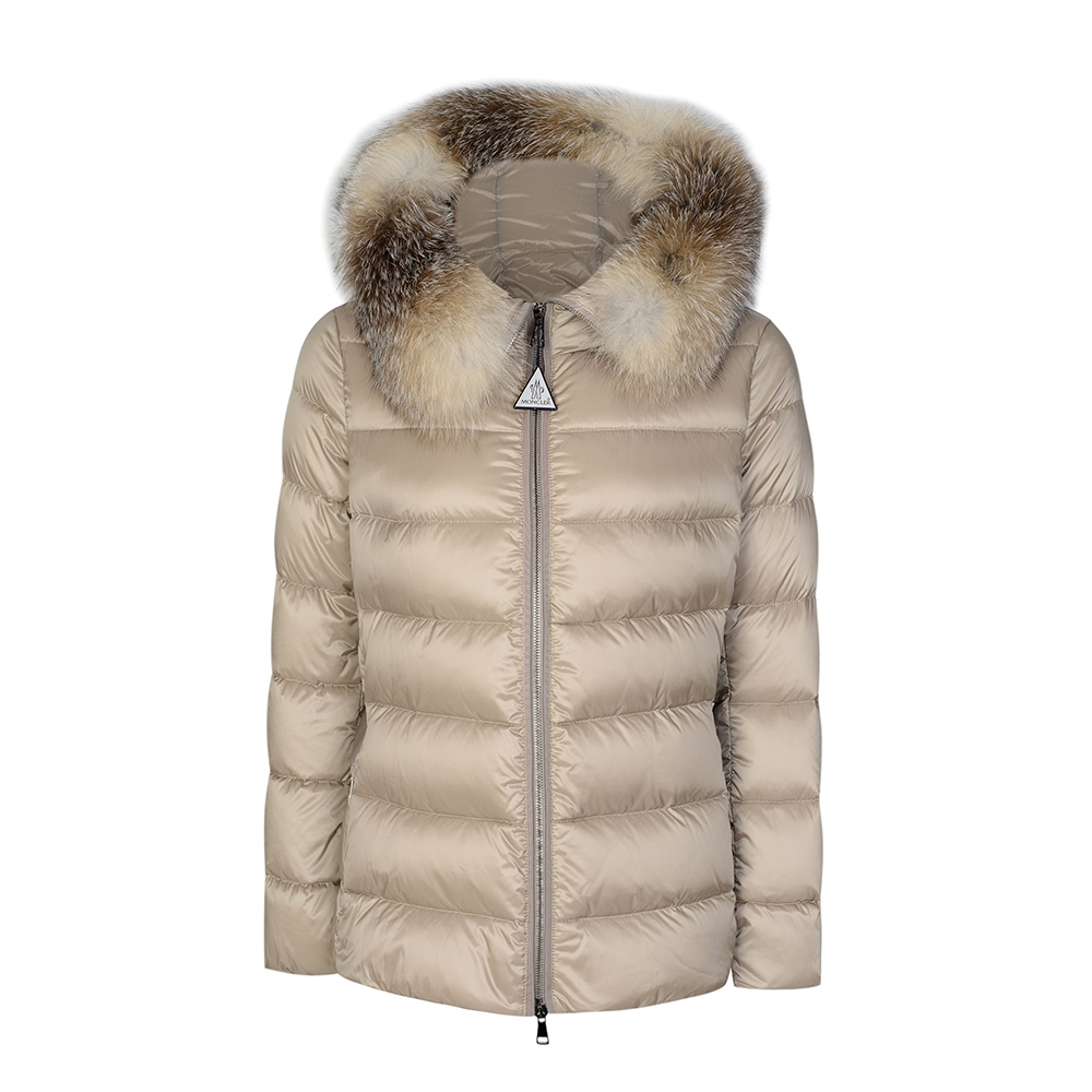 The design includes a hood trimmed with long-haired sheepskin or fur (depending on version), which adds texture and a luxe accent while offering protection in colder conditions.
