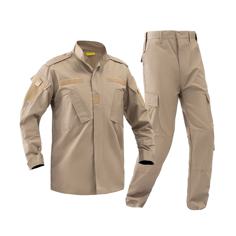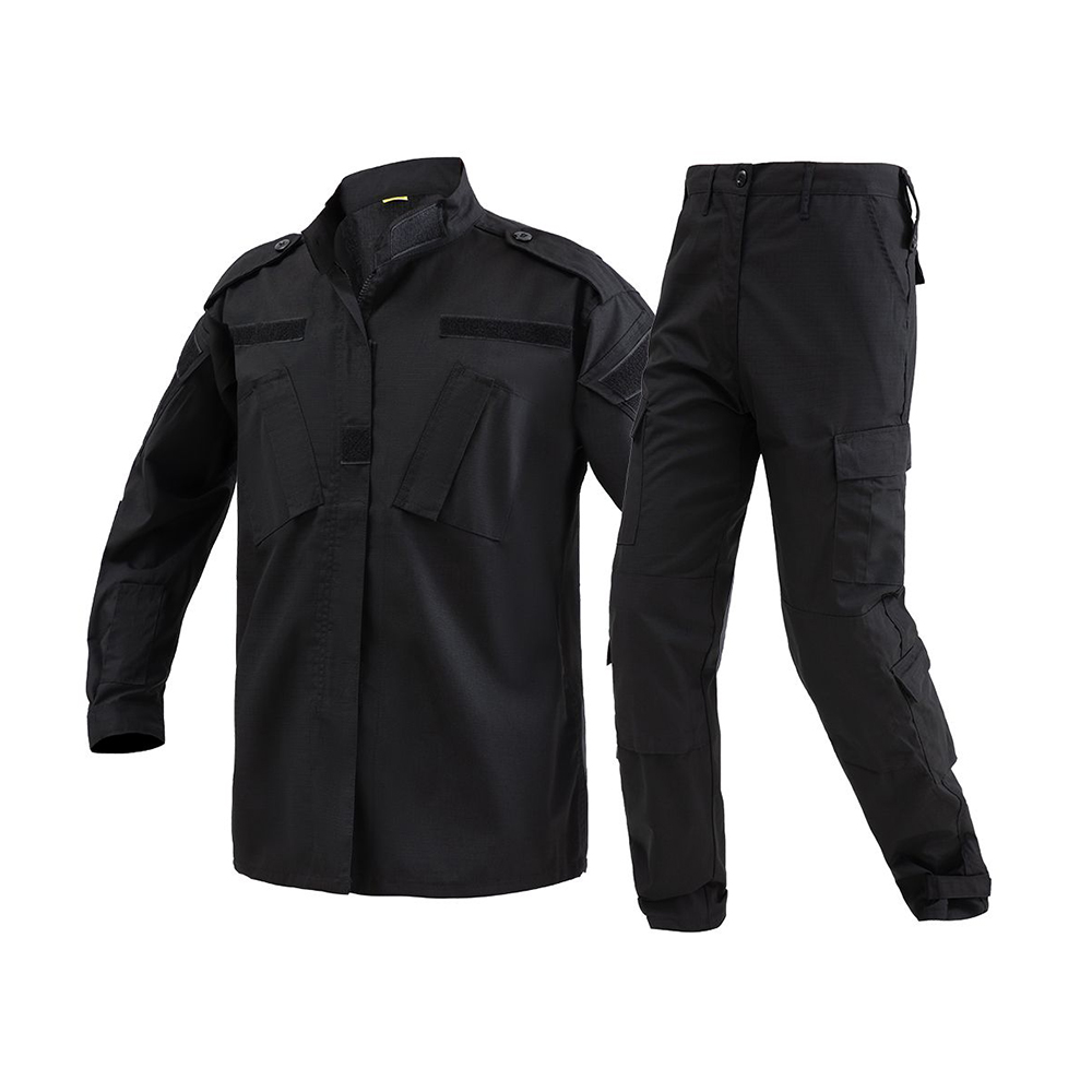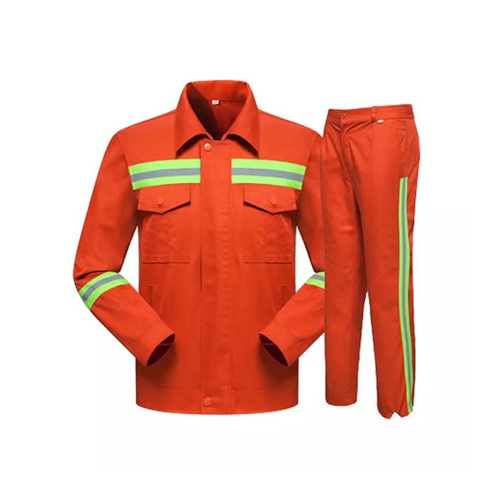 Trousers include multiple functional pockets for carrying tools and accessories.